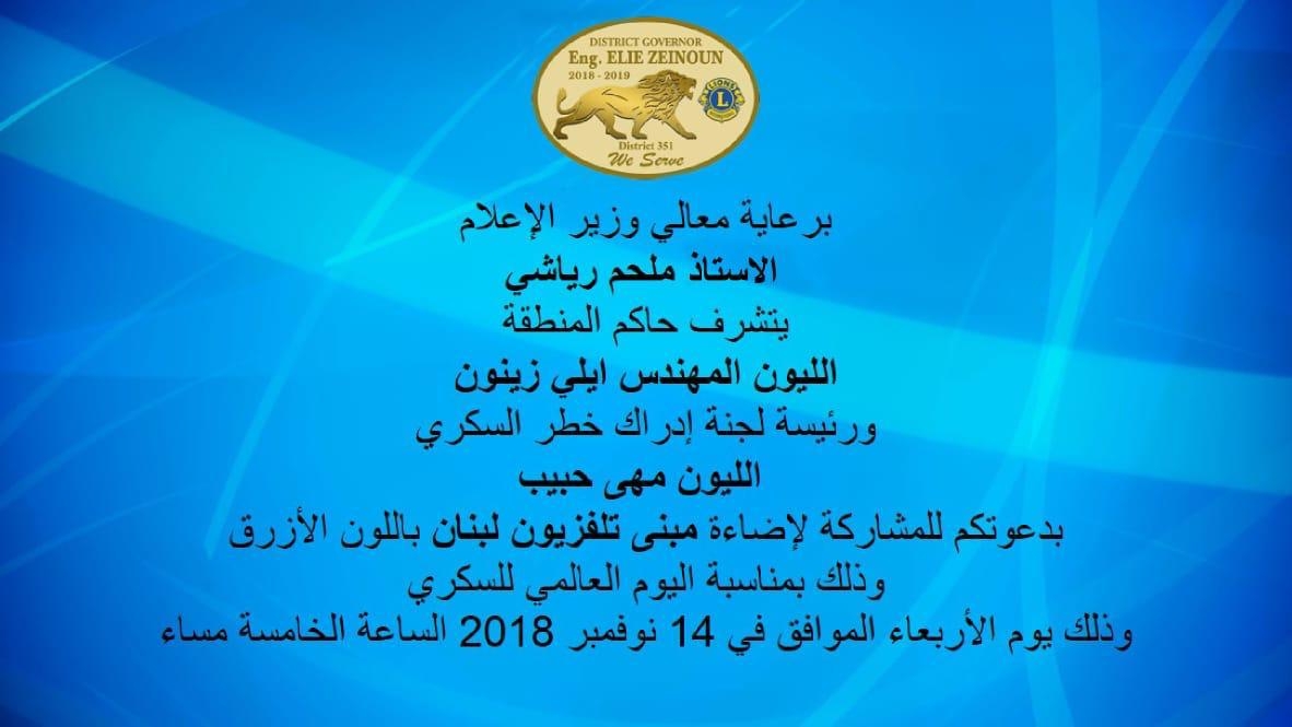 بمناسبة اليوم العالمي للسكري اضاءة مبنى تلفزيون لبنان