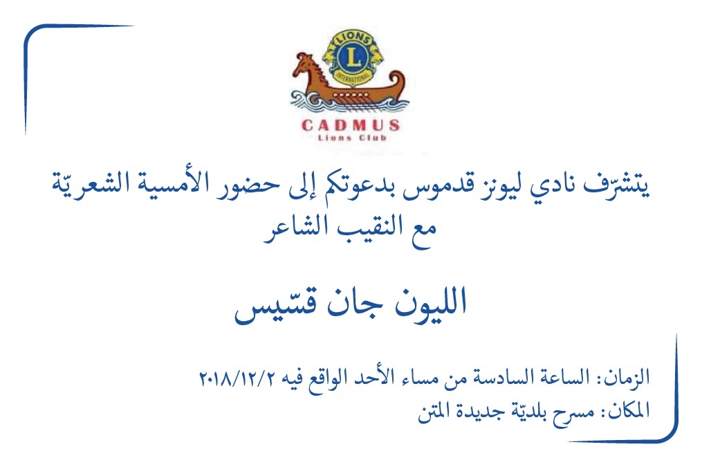 أمسية شعرية - نادي ليونز حازمية قدموس