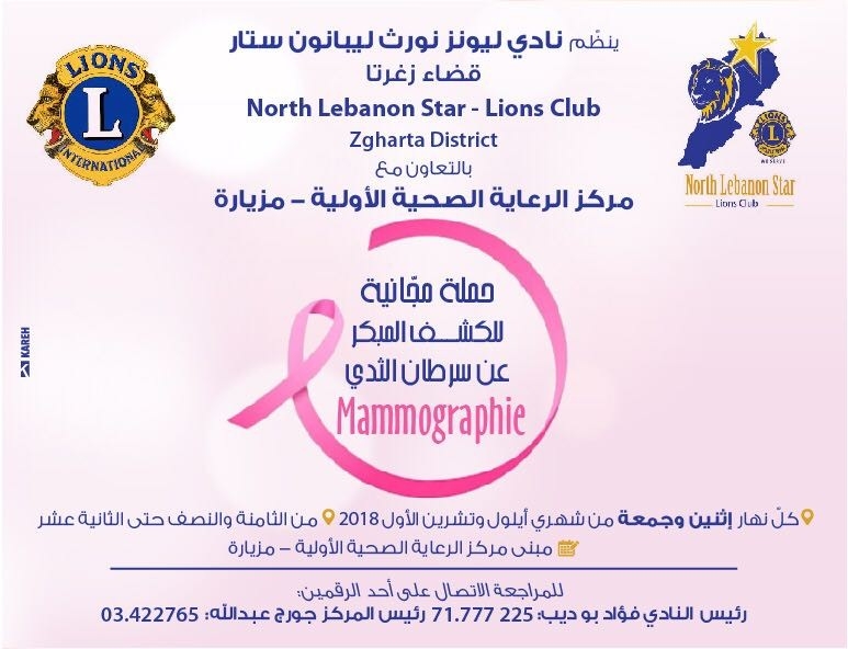 حملة مجانية للكشف المبكر عن سرطان الثدي- نورث ليبانون ستار